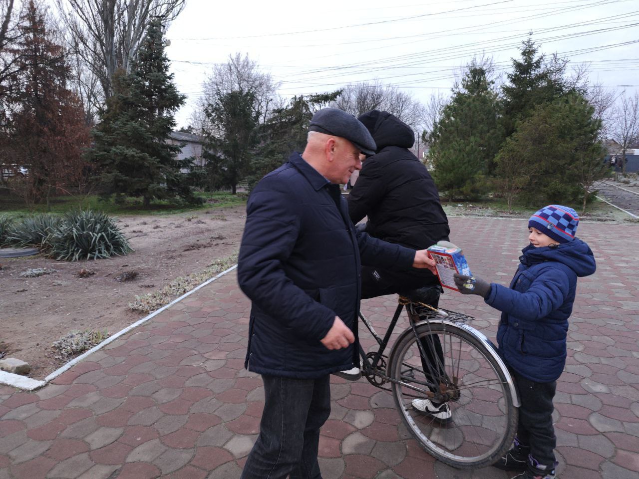 Прийшов навіть клірик Скадовського Свято-Пантелеймонівського храму отець Ростислав, який розповідав дітям про значення свята Миколая. Може, він розказав їм і про те, що із приходом радянської влади на більшу частину українських земель Святого Миколая, як і решту релігійних символів, витіснили? Навряд чи.