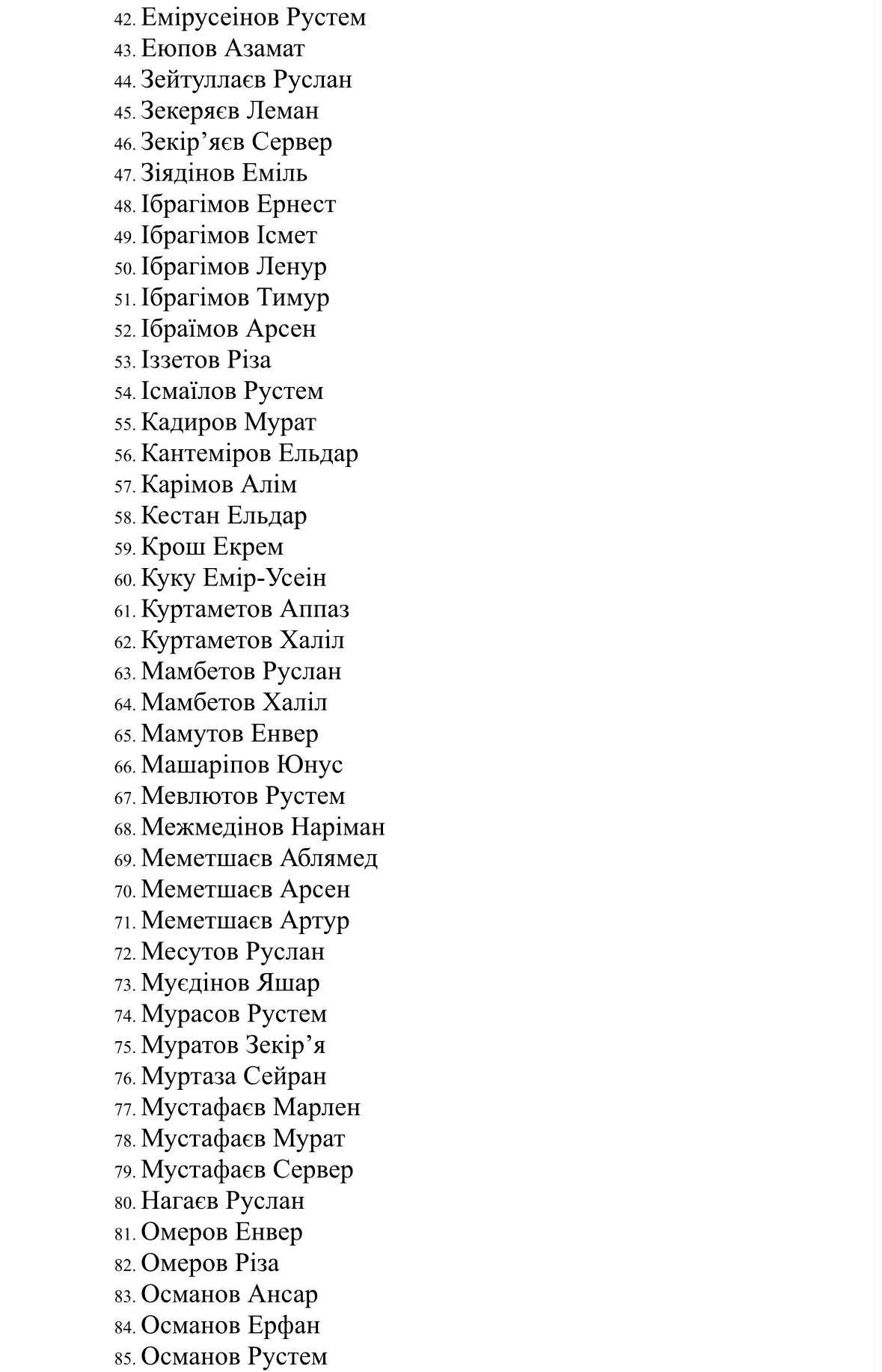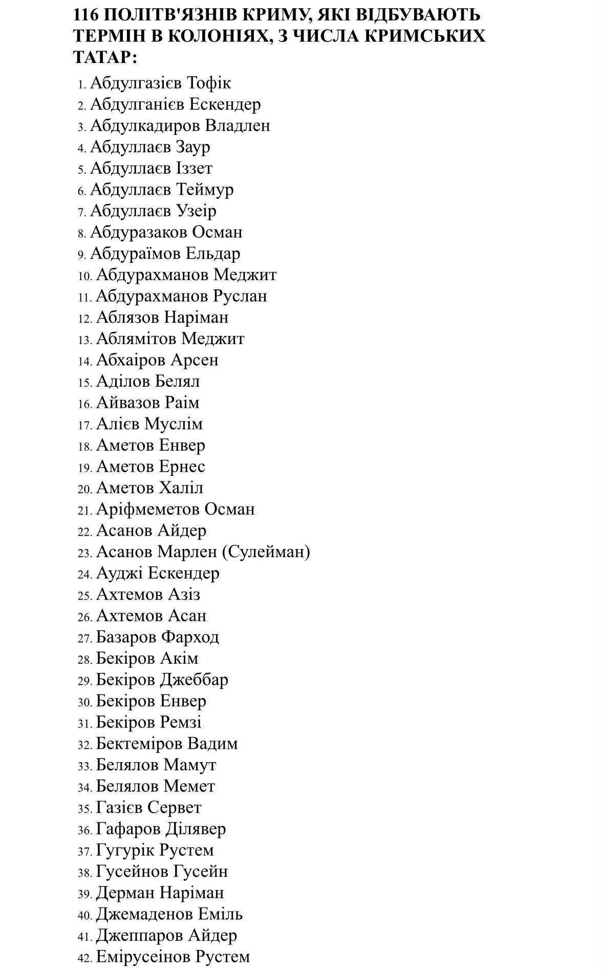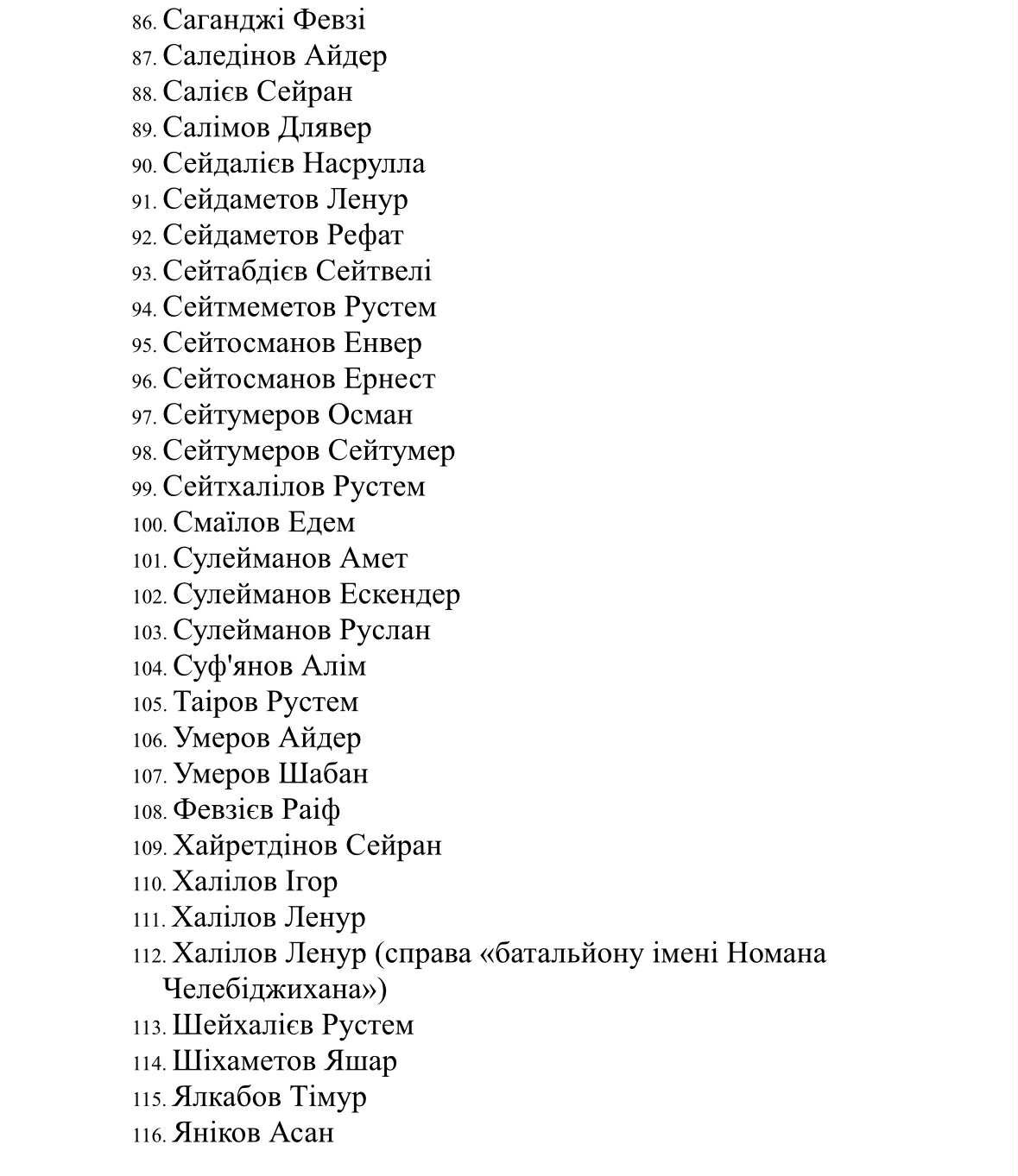 Серед незаконно утримуваних окупантами в СІЗО кримських татар (станом на липень 2025 року):