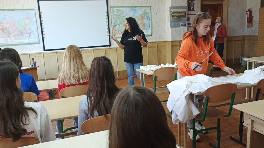 Фото: російські пропагандистські паблікиТакож активісти розповіли школярам про можливості отримання грантів від Росмолоді.