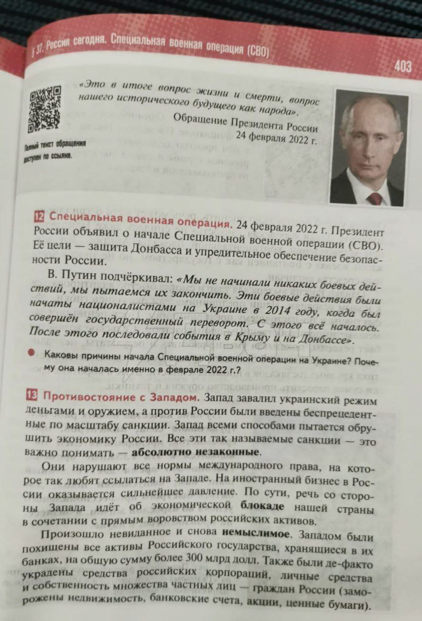 Мабуть, слід додати, що саме за цим підручником вчаться одинадцятикласники не лише у Росії, а і на окупованих територіях Херсонської, Запорізької, Донецької і Луганської областей.
