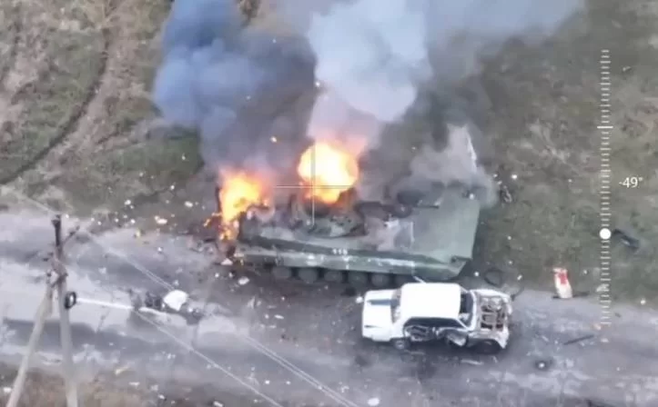 Один приліт, другий, третій… І ось уже прапороносці стікають кров’ю після фатальної бравади на камеру. До них на підмогу відправляються ще двоє товаришів по зброї. Українські військові спостерігають за цією виставою наживо і наносять нові ураження ворогу, збільшуючи його втрати у цій безглуздій вилазці до п’яти осіб.