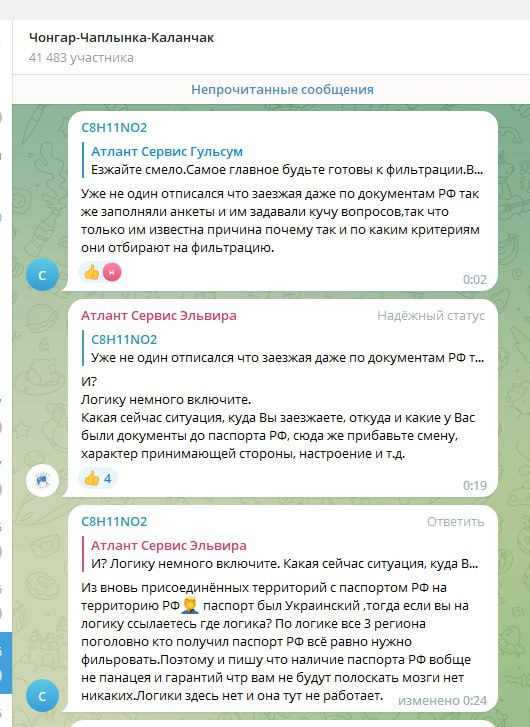 Люди пишуть, що «фільтрацію», тобто, ретельну перевірку на лояльність до окупантів проходять усі мешканці окупованих українських територій, які перетинають російські блокпости на адмінмежі між Херсонщиною і Кримом.