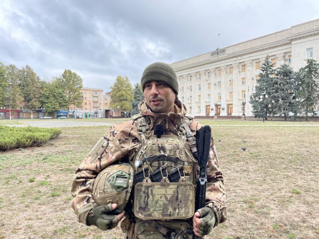 Військовослужбовець 124 окремої бригади територіальної оборони морської піхоти на позивний "Біря" — військовий сапер. Він родом з Одеської області й до початку повномасштабного вторгнення ніколи не був у Херсоні. У складі Сил оборони захисник працював над деокупацією правобережжя і вперше потрапив до обласного центру 11 листопада 2022 року.