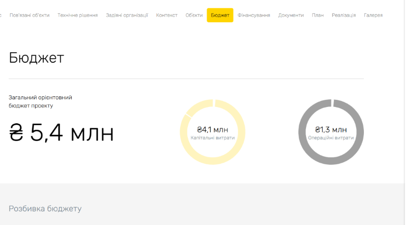 Орієнтовна вартість проєкту — близько 5,4 мільйона гривень. З цієї суми 4,1 мільйона будуть спрямовані на капітальні витрати, а 1,3 мільйона — на операційні. Фінансування проєкту поки що не підтверджене.