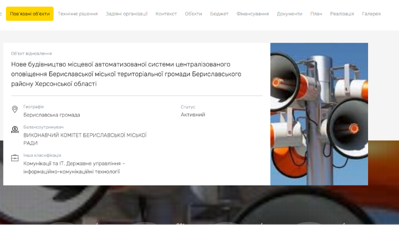 У Херсонській області розпочали ініціативу з будівництва системи централізованого оповіщення, яка забезпечить швидке інформування населення про потенційні загрози та надзвичайні ситуації. Для реалізації цього проєкту планується залучити понад 5 мільйонів гривень.Як повідомив Центр публічних розслідувань з посиланням на екосистему DREAM, проєкт передбачає створення місцевої автоматизованої системи оповіщення для Бериславської міської територіальної громади. Його мета — своєчасно інформувати громадян про можливі небезпеки як у мирний час, так і в особливий період, а також надавати актуальну інформацію про ситуацію в регіоні.
