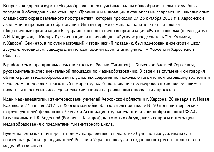 Усі ці заходи проходили під патронатом громадських організацій «Русская школа» і «Русская национальная община «Русичъ», які реалізовували в Україні, і зокрема на Херсонщині, програми російського фонду «Русский мир».