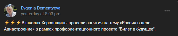 Росіяни поки не опублікують фото нового “міністра”, та проаналізувавши соцмережі кримської комуністки, ми встановили, що опікуватись освітою на окупованій території Херсонщини буде саме вона. Так, на її сторінці у соцмережі “ВКонтакте” більшість публікацій останнім часом присвячено саме налагодженню російської системи освіти в Херсонській області.