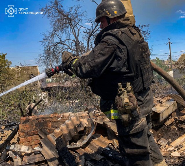 Упродовж минулої доби ворог завдавав ударів по житлових кварталах передмістя Херсона. Внаслідок масованих обстрілів майже одразу виникло кілька пожеж. Горіли житлові будинки, недіюча будівля АЗС, гараж, легковий автомобіль та сухостій.Про це інформує пресслужба ДСНС Херсонської області.