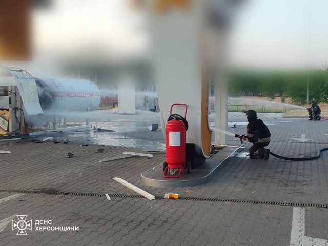 Також вранці в одному з районів міста Херсон унаслідок влучання з ворожого дрону було пошкоджено трубопроводи газового модуля на автомобільній газозаправній станції, у результаті чого виникла пожежа газоповітряної суміші.