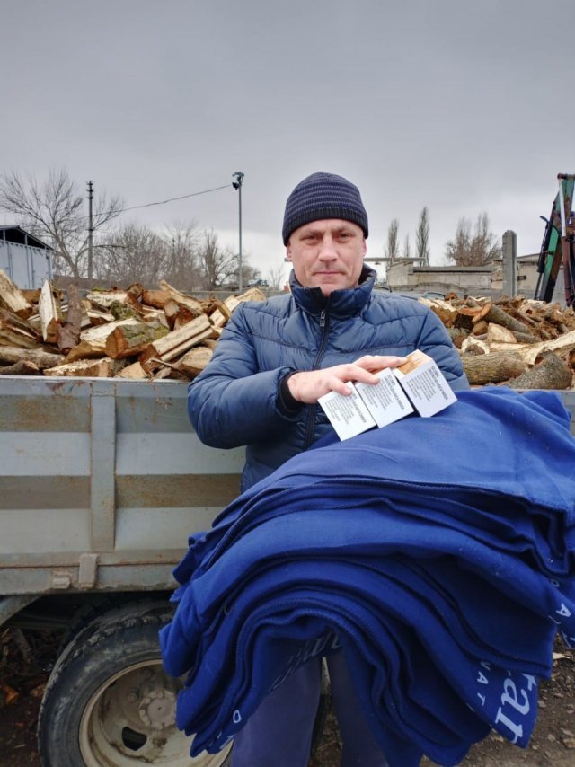 У межах програми "Утеплення Херсонщини" у лютому жителі Антонівки отримали понад 500 кубометрів дров, 250 теплих ковдр та 250 ліхтарів-павербанків.