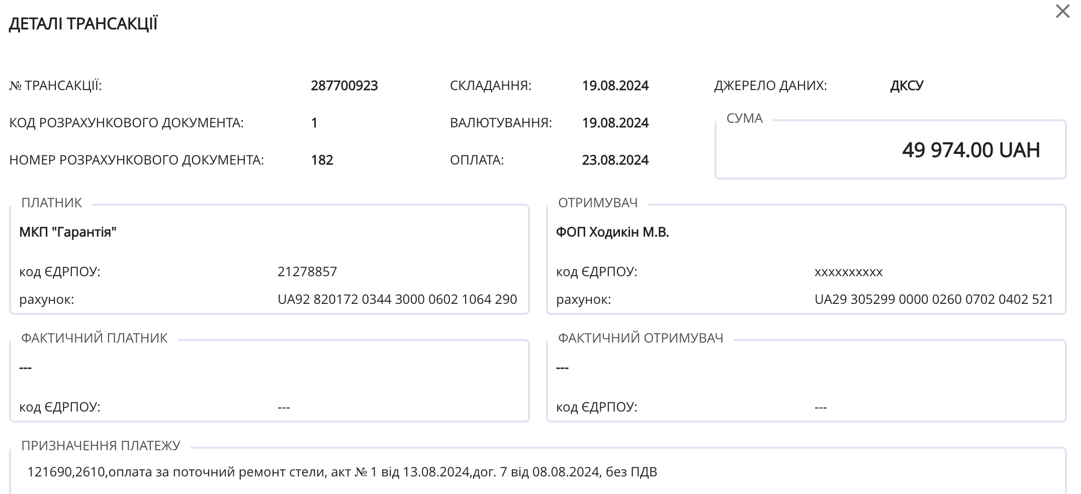 За ремонтні роботи Миколі Ходикіну заплатили 49 974 гривні.