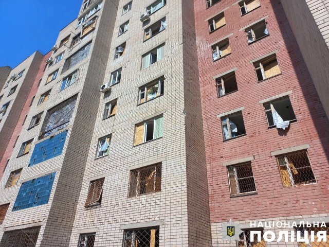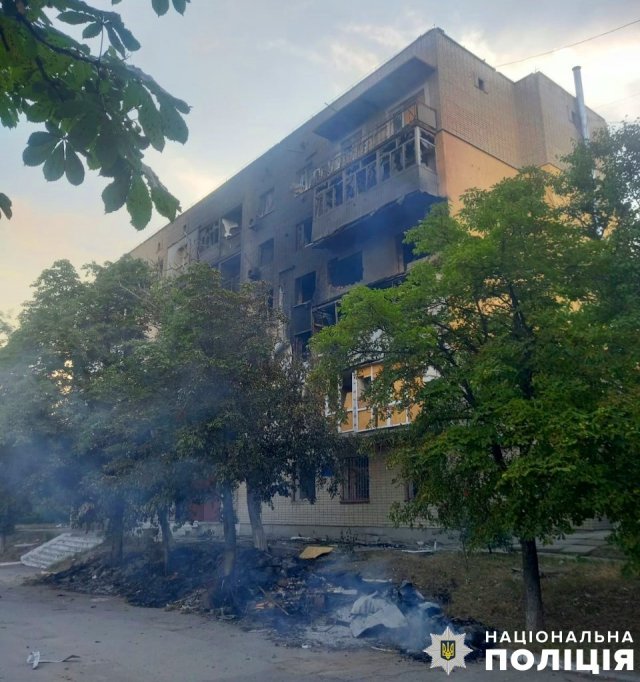 Вранці під атакою ворожих військ вкотре перебував Дніпровський район Херсона. З артилерії окупанти поцілили у адміністративну будівлю, навчальний заклад та багатоповерховий будинок, обійшлося без постраждалих.
