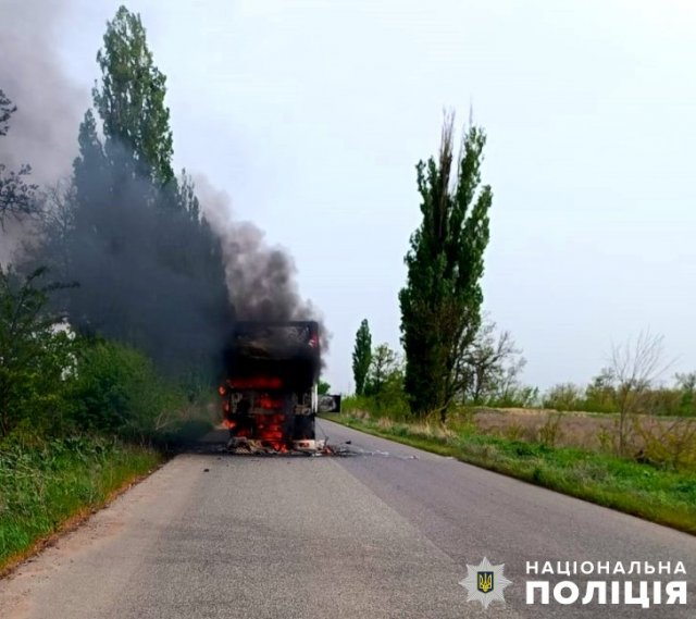 На трасі між Золотою Балкою та Михайлівкою російські військові дроном атакували цивільний вантажний автомобіль. Внаслідок вибуху транспортний засіб загорівся, 58-річний водій отримав перелом пальця руки, множинні садна та рану голови.