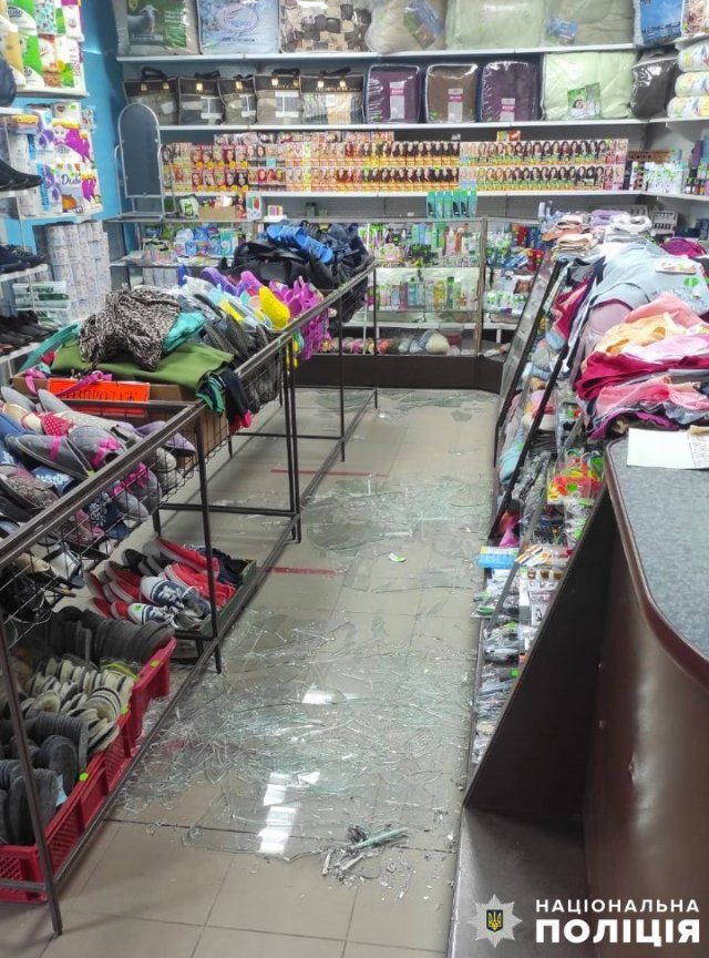 У населених пунктах пошкоджень зазнали 32 об’єкти: 20 приватних будинків, чотири магазини, кафе, приміщення майстерні, три цивільні автомобілі, службовий автомобіль поліції та карета швидкої допомоги.