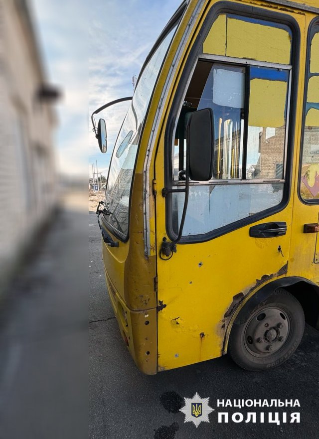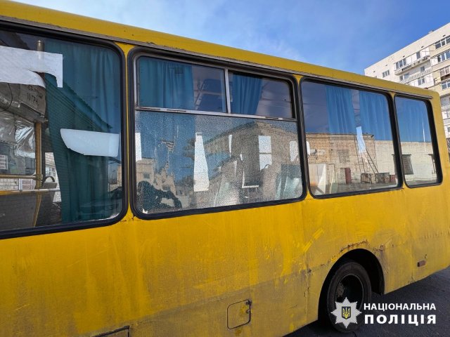 У Дніпровському районі міста через скид із БпЛА пошкоджено маршрутний автобус. Також під удар російського безпілотника потрапив 20-річний чоловік. Його доправили до лікарні з мінно-вибуховою травмою, уламковими пораненнями стегна й ноги.