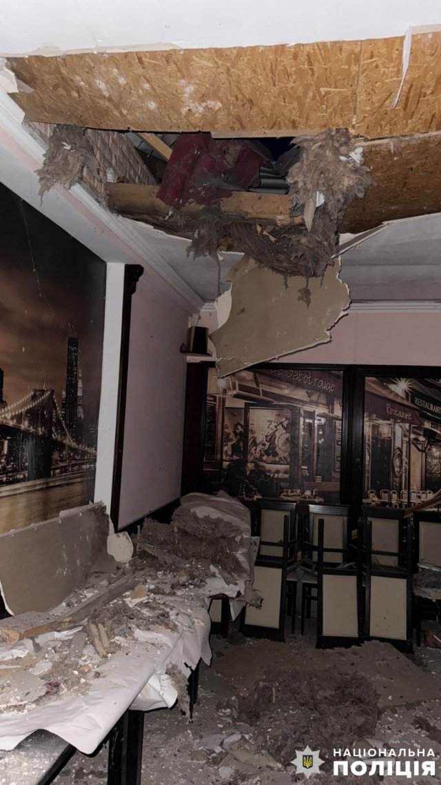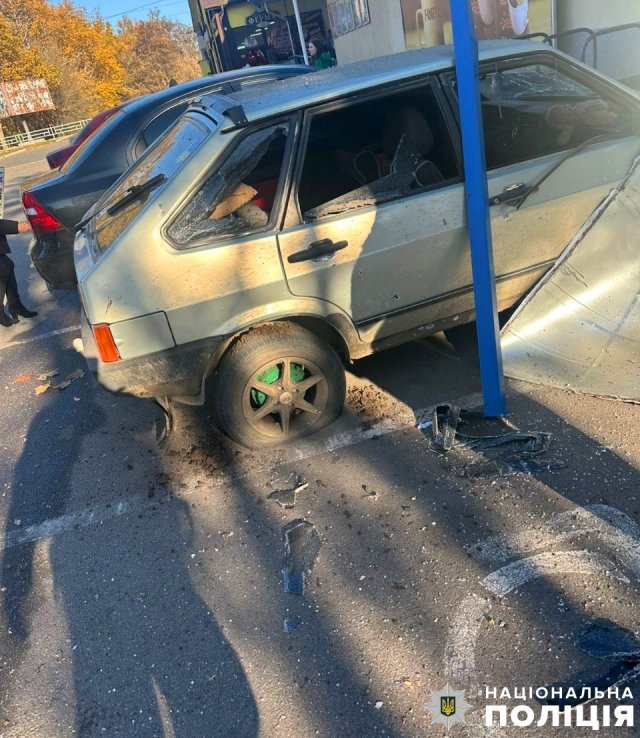 Через скид вибухівки з БпЛА постраждав 62-річний чоловік, його шпиталізували з вибуховою травмою та уламковим пораненням стегна. В результаті артилерійського обстрілу та дронових атак пошкоджено магазин і чотири автомобілі.