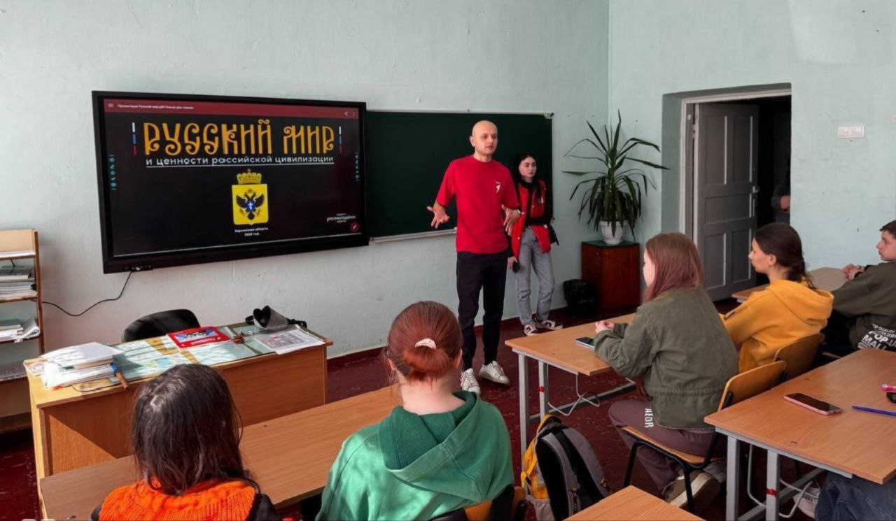 Учням окупаційної Ольгинської школи Горностаївського «муніципального округу» представник окупаційного «Руху перших», розповідав про «русскій мір». «У ході бесіди учні змогли ближче познайомитись з такими ключовими цінностями нашої країни, як патріотизм, міцна сім’я, виховання та історична наступність», – повідомили російські наступники Геббельса.