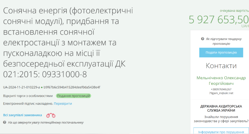 Про це повідомив Центр публічних розслідувань з посиланням на дані електронної системи публічних закупівель Prozorro.