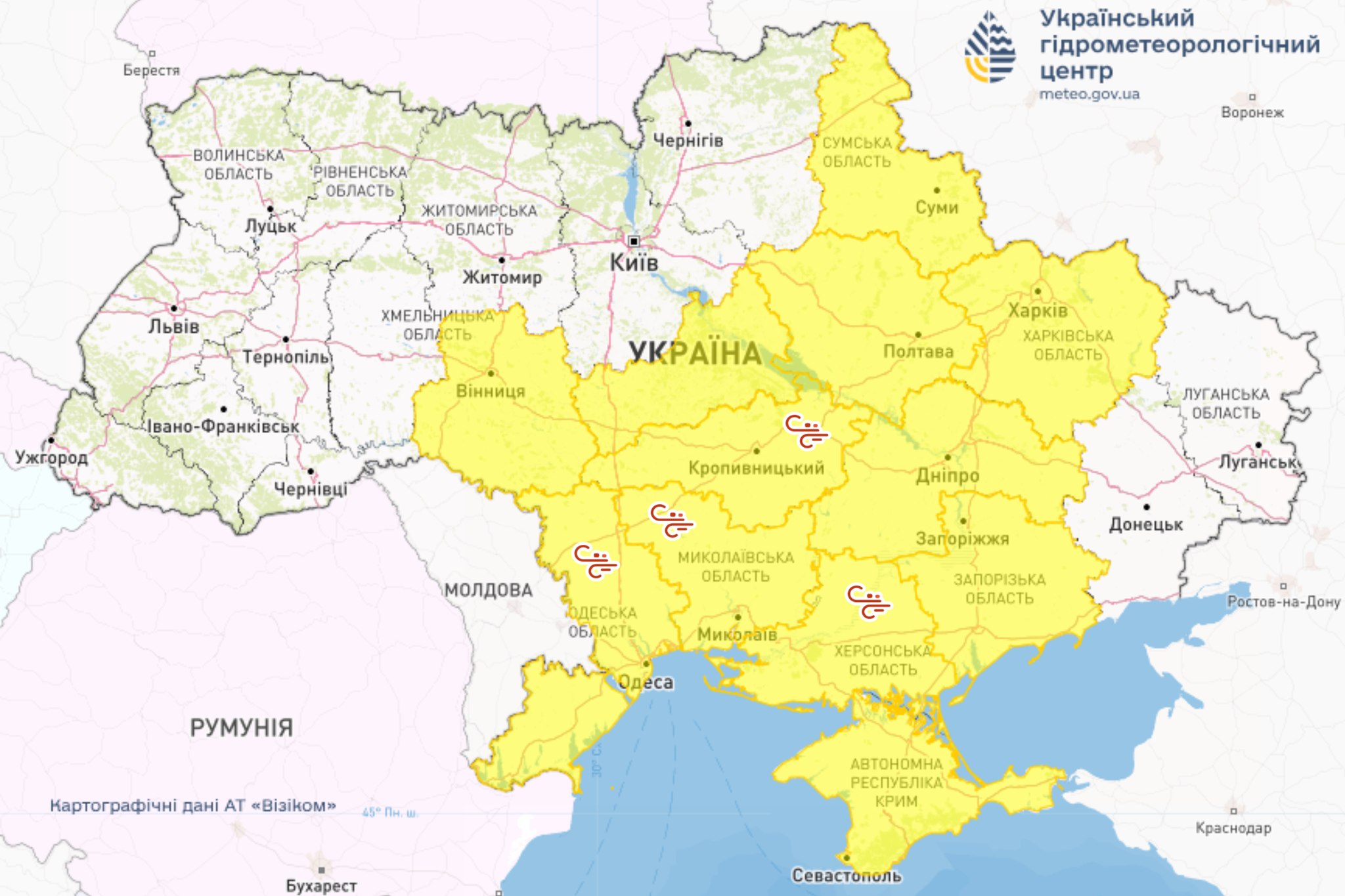 За даними Українського гідрометеорологічного центру, у найближчу годину з утриманням до кінця доби 18 березня в Кіровоградській, Одеській, Миколаївській та Херсонській областях очікується пилова буря та пориви вітру 15-20 м/с.