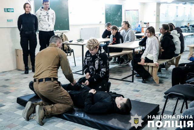 Правоохоронці наголосили підліткам, що надавати допомогу постраждалим людям потрібно лише за умови, що це безпечно для них самих, бо пріоритет – це власна безпека. Також нагадали загальні правила поведінки під час обстрілів та сигналу повітряної тривоги.Отримані знання учні впевнено закріпили на практиці. Гості підготували для хлопців та дівчат різноманітні сценарії екстрених ситуацій. Діти тренерувалися правильно оцінювати стан постраждалих, надавати першу допомогу, накладати турнікети та бандажі.