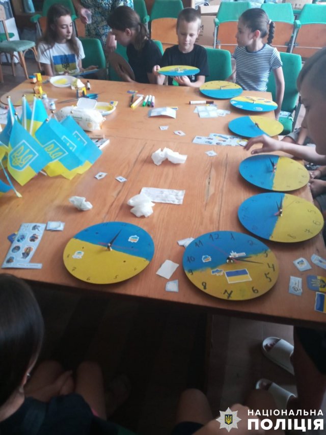 Також під час заходу правоохоронці провели з хлопчиками та дівчатками вікторину на знання української символіки та цікавий майстер-клас із виготовлення патріотичних годинників. Маленькі патріоти застосували усі свої творчі здібності та майстерність під час розфарбовування та прикрашання дорогих серцю синьо-жовтих годинників."До дня Державного Прапора поліцейські продовжують проводити цікаві пізнавальні заходи для дітей із деокупованих населених пунктів із метою патріотичного виховання маленьких українців та підтримки їхнього емоційного стану. Адже через постійні російські обстріли діти Херсонщини не мають нормального дитинства. Тому правоохоронці роблять все можливе, щоб дітлахи посміхалися та, хоч на деякий час, могли забути, що в країні йде війна", – розповів начальник ювенальної поліції Херсонщини Віталій Сайфутдінов.