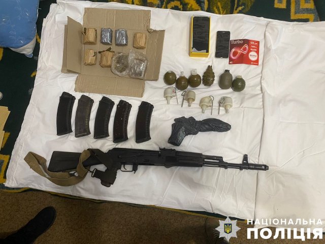 Одночасно за місцями проживання фігурантів були проведені пʼять обшуків. Правоохоронці виявили та вилучили розчин для підпалу, карти пам’яті та відеореєстратори із записами злочинів, мобільні термінали, сім-картки, два пістолети, автомат, 12 гранат та набої.