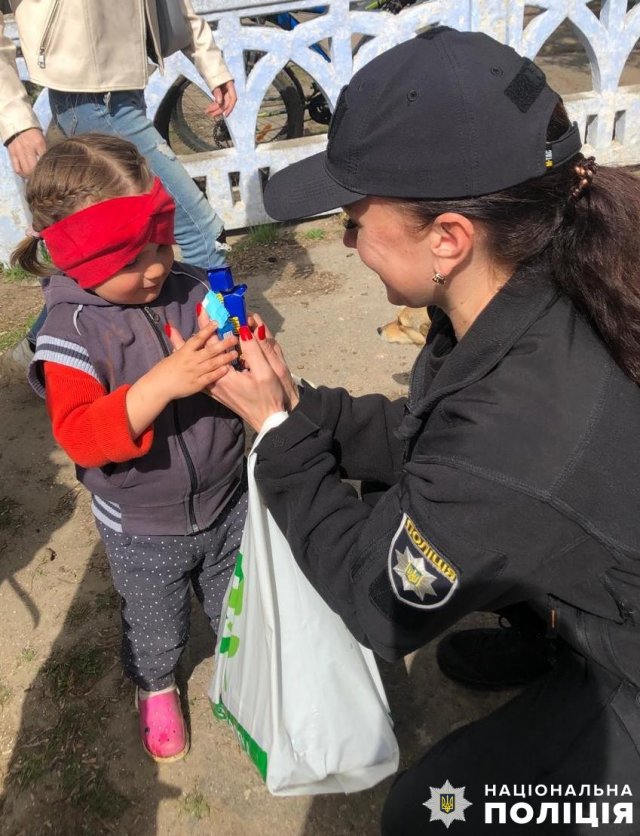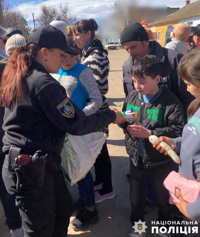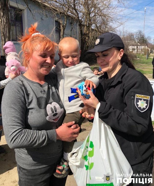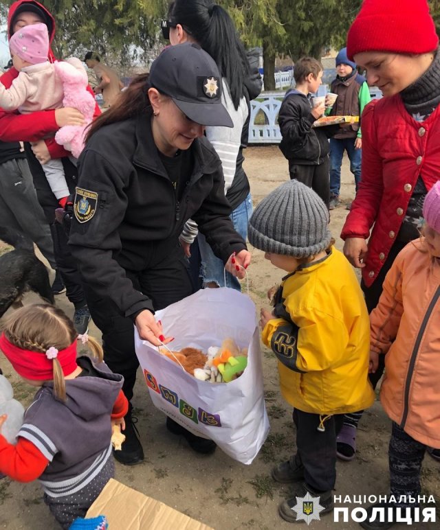 На Херсонщині поліцейські та благодійники передали гуманітарну допомогу сім’ям переселенців із дітками з окупованого лівобережжя