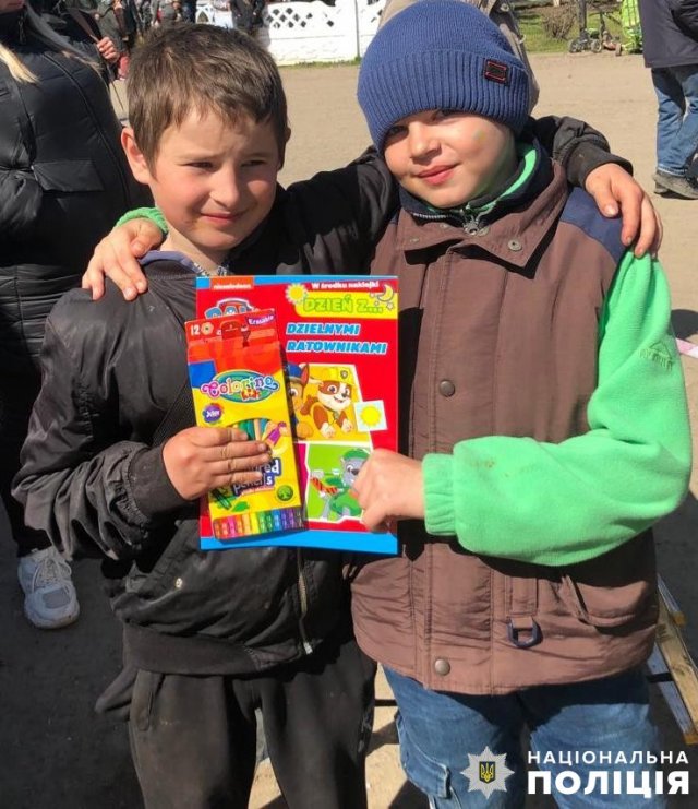Батьки та діти дякували благодійникам і поліцейським, які роблять все можливе для підтримки людей на деокупованих територіях та передають допомогу вимушеним переселенцям відповідно до їх потреб. Діти з Олешок, Голої Пристані та Каховки подарували прапорці іноземним гостям та казали, що дуже чекають на звільнення лівого берега і повернення додому.