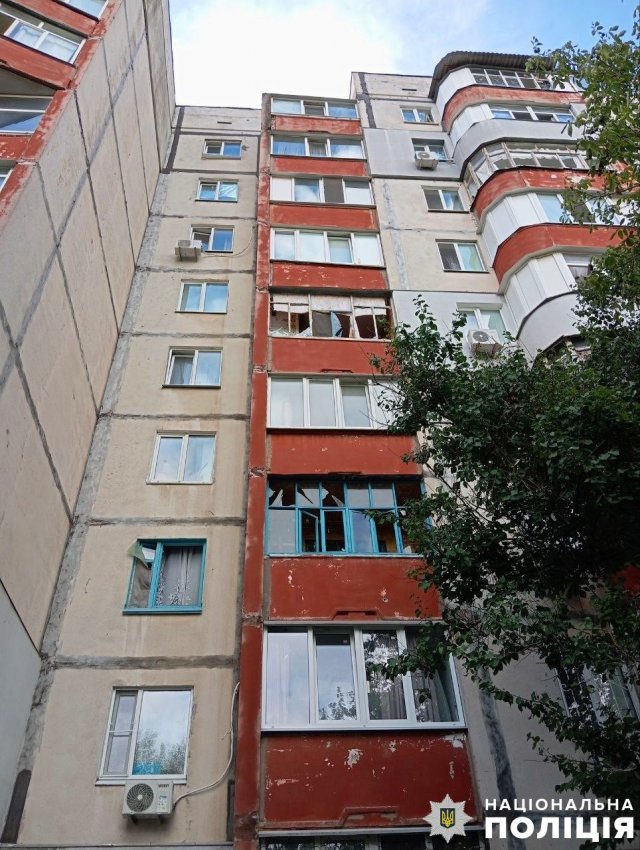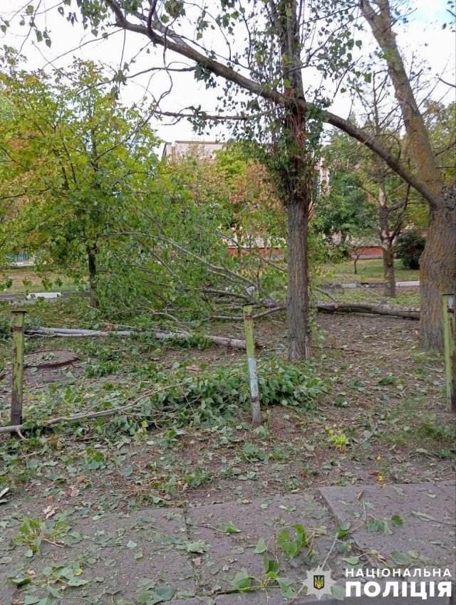 Пошкоджень зазнали шість приватних та два багатоквартирні будинки, школа, три цивільні автівки та службовий автомобіль поліції, автобус та харчоблок медичної установи.