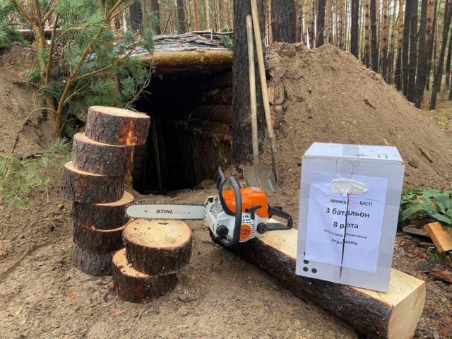 На своїх позиціях в Олешківських лісах загарбники влаштовують собі підземні храми. Для цього розпилюють на колоди і дошки українські сосни. Важко уявити, але більшість з окупантів - віруючі.