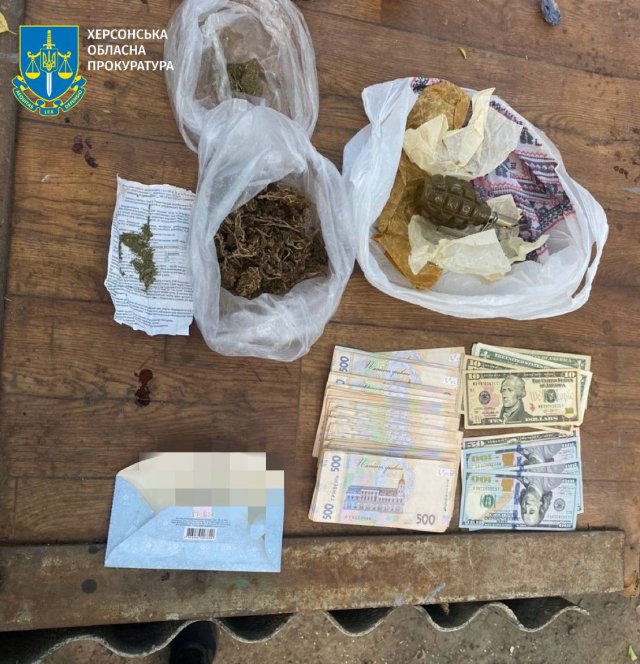 Під час обшуків у домоволодіннях та автотранспорті фігурантів вилучено канабіс та його насіння, чотири гранати Ф-1, автомат, мобільні телефони, банківські картки, гроші тощо.
