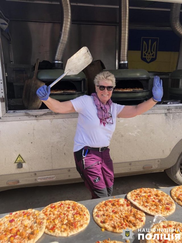 Щоб продемонструвати свою солідарність із народом України та підтримати людей, які через війну були вимушені покинути рідні домівки й втратили майно, волонтери безоплатно пригощали усіх свіжоспеченою піцою. А ювенальні поліцейські дарували діткам солодощі та іграшки.