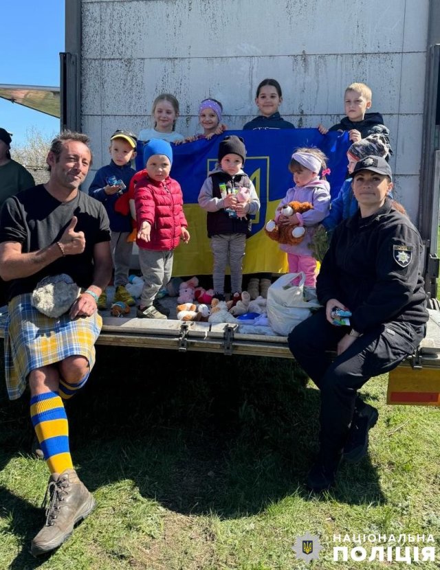 Представники шотландської організації «Siobihan's Trust» разом з ювенальними поліцейськими прибули з благодійною місією в одне з селищ Херсонської міської громади, де знайшли прихисток сім’ї з дітками із тимчасового окупованого лівобережжя. Перше, що зробили волонтери по прибуттю до селища, це вивісили на своєму автомобілі прапор України та висловили захоплення сміливістю і стійкістю українців.