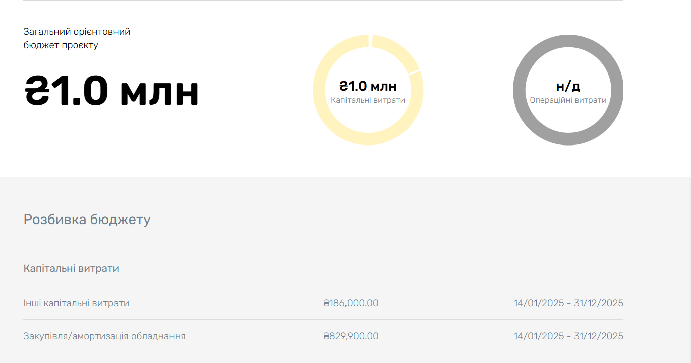 Бюджет проєкту складає 1 мільйон 15 тисяч гривень. Наразі підтверджених джерел фінансування немає.