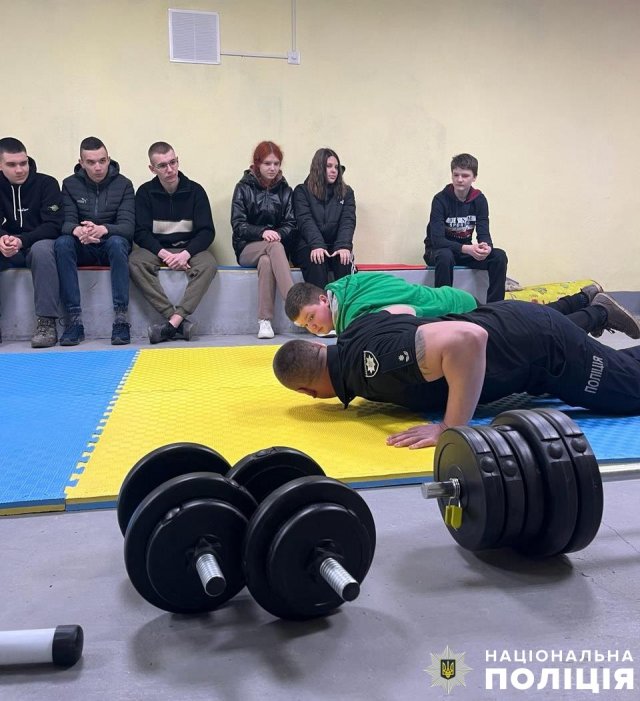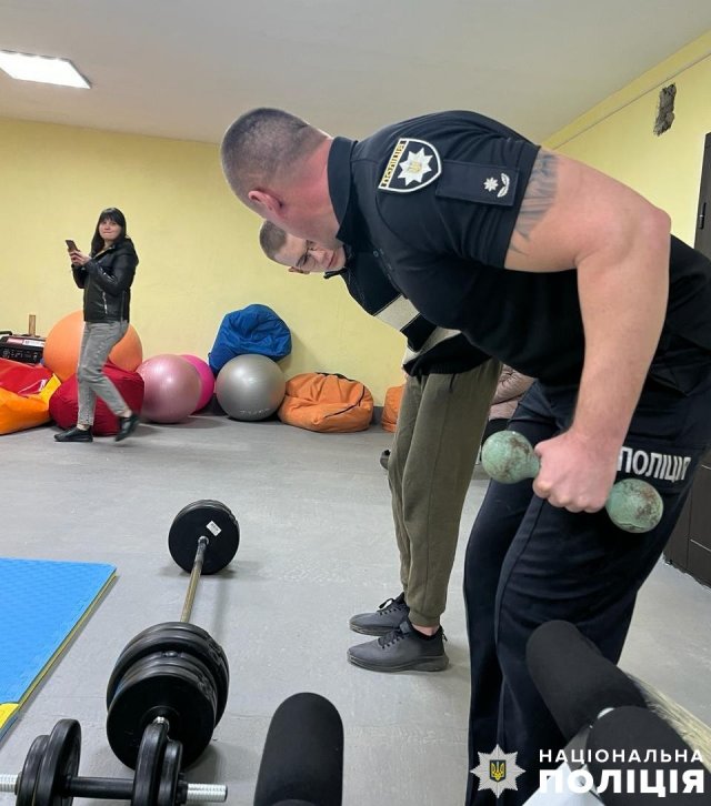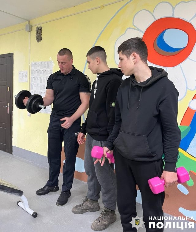 Після силового навантаження діти виконали вправи для заспокоєння та зняття м’язової напруги, викликаної стресом через постійні російські обстріли. Поліцейські показали їм прості вправи, які діти зможуть щоранку виконувати вдома.