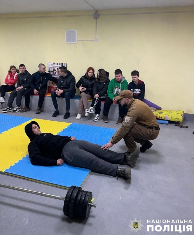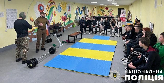 На Херсонщині у бомбосховищі поліцейські провели для дітей заняття з самооборони та лікувальної гімнастики