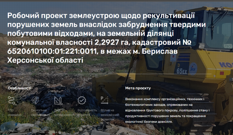 Робочим проєктом землеустрою передбачено проведення технічного та біологічного етапів відновлення території.