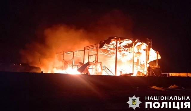 Під час нічної дронової атаки російські військові БпЛА типу «Shahed-136» атакували аграрне підприємство у Херсонському районі. Внаслідок удару пошкоджено складське приміщення, там зайнялася пожежа.