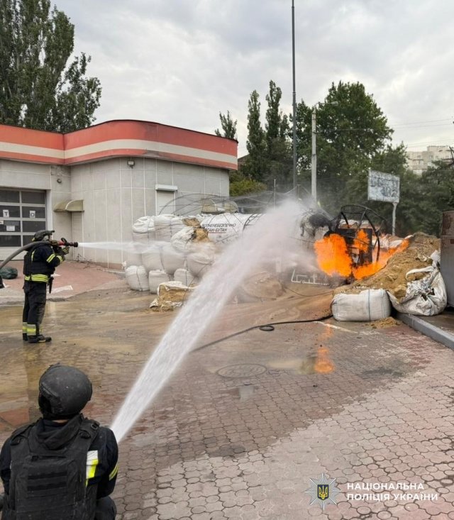 У Центральному районі росіяни атакували безпілотником територію АЗС, там виникла пожежа.