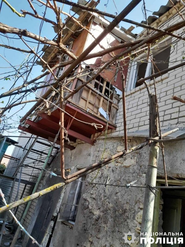 З артилерії окупанти гатили і по Дніпровському району. Пошкоджень зазнали будівля банку, багатоквартирний і три приватні будинки.Також у цьому районі окупанти скинули вибухівку з дрона на приватний будинок, що призвело до його пошкодження та пожежі. Вогонь швидко загасили.