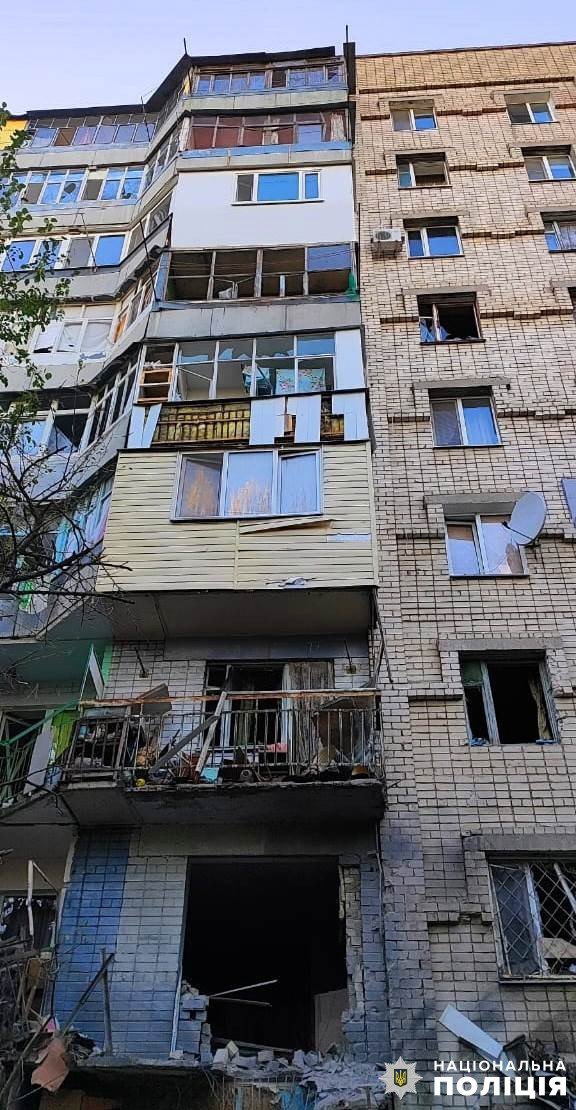 Зазнали пошкоджень 26 об’єктів: два багатоповерхові та 12 приватних будинків, сім цивільних та один службовий автомобіль поліції, об’єкт критичної інфраструктури, поштове відділення і гараж.