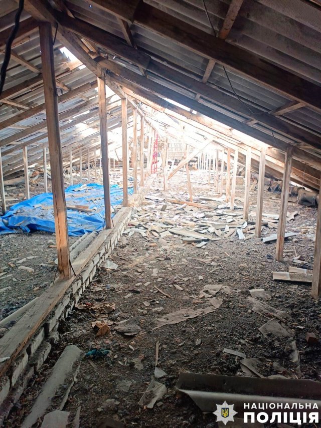 У Херсонському районі внаслідок обстрілів пошкоджено 30 об’єктів: 10 багатоквартирних та стільки ж приватних будинків, центр творчості, пункт незламності, газопроводи, лінію електромереж, гаражі та 3 автомобілі, серед яких 2 службові автомобілі поліції.