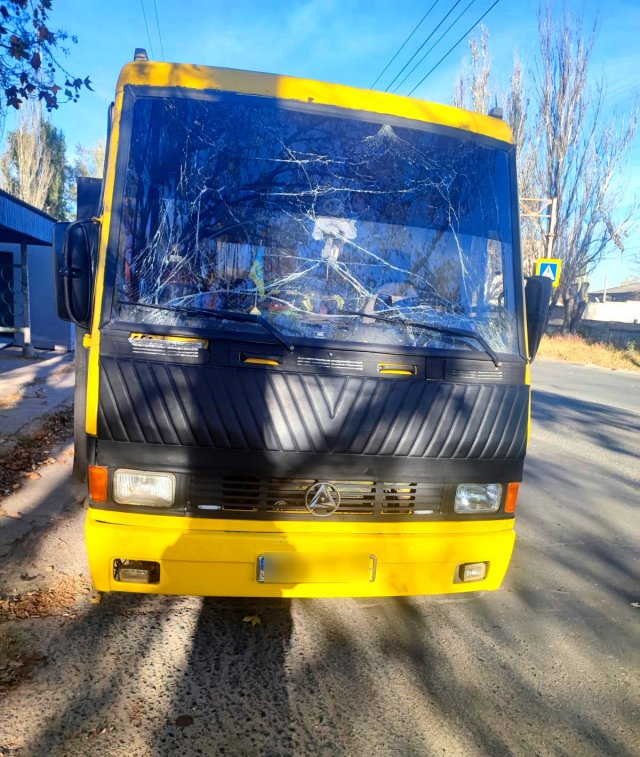 У Дніпровському районі під артилерійський вогонь противника потрапив маршрутний автобус з пасажирами. Поранення отримали 7 людей, вік постраждалих від 36 до 69 років. Двоє з поранених, 36-річна жінка та 49-річний чоловік, перебувають у тяжкому стані у відділенні реанімації.