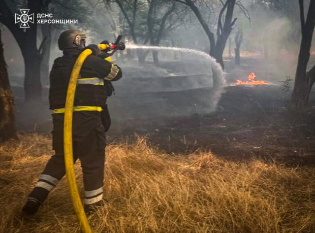 На Херсонщині вогнеборці продовжують боротися з пожежами