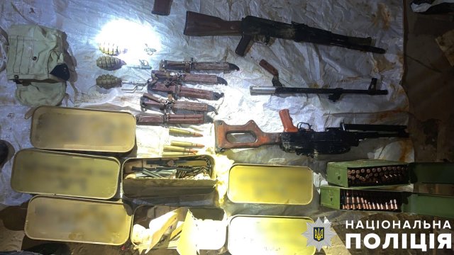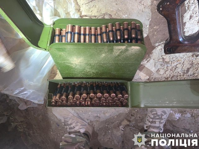 Крім цього, збувач повідомив правоохоронцям, що він сховав у підвальному приміщенні житлового будинку в мікрорайоні «Шуменський» ще зброю та боєприпаси. Тож під час огляду підвалу правоохоронці виявили та вилучили понад півтори тисячі патронів калібром 5,45 мм, близько 900 патронів калібром 7,62 мм, три гранати Ф-1 із запалами, кулемет ПКМ, автомат АК-74 та 5 споряджених магазинів і 5 штик-ножів.