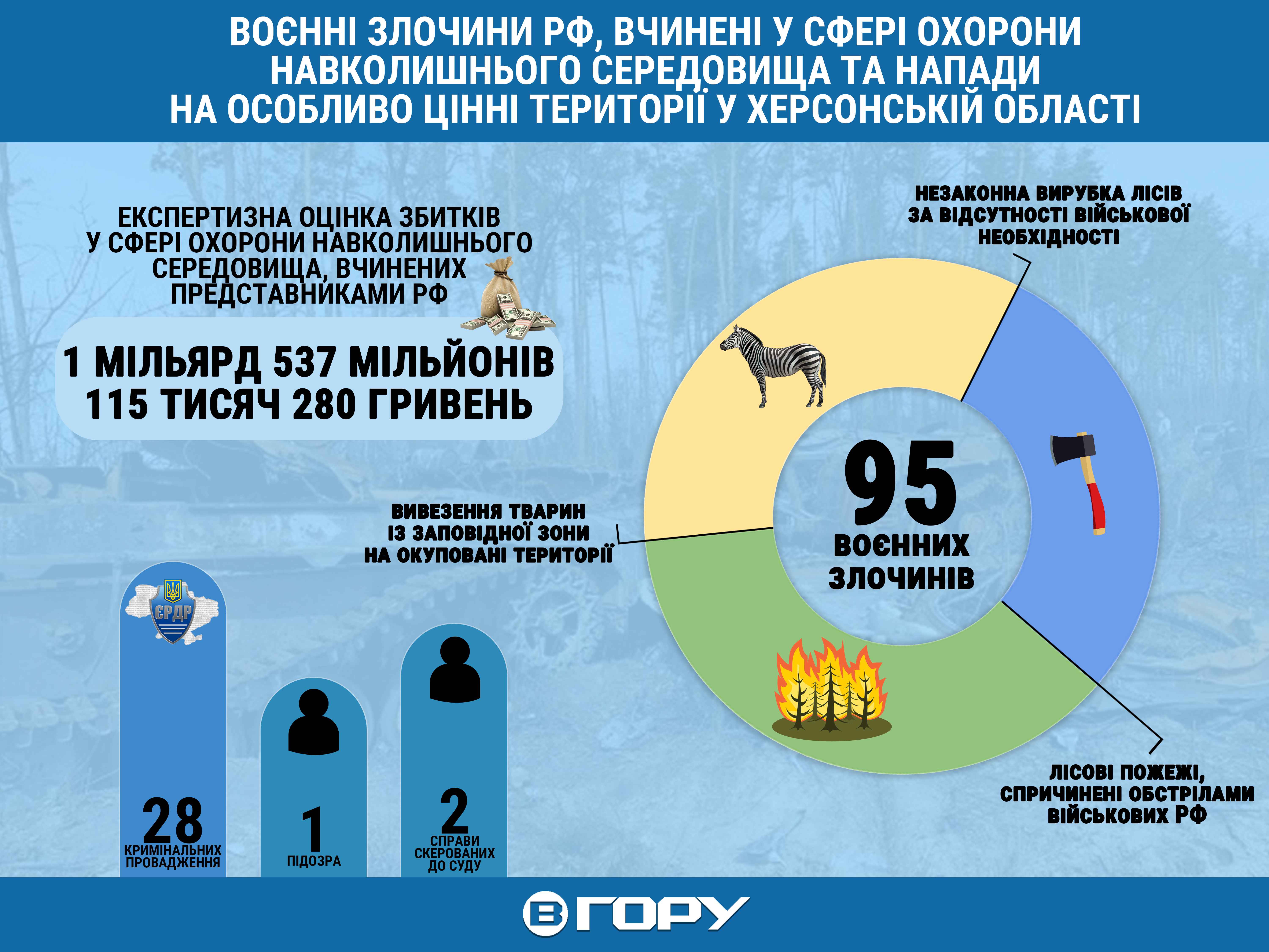 Також відомо, що за фактами злочинів у сфері охорони навколишнього середовища, вчинених представниками РФ, призначається відповідна експертиза для оцінки збитків. На початок грудня вони становили 1 мільярд 537 мільйонів 115 тисяч 280 гривень.