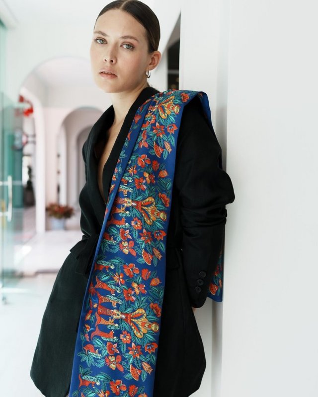 На хустці українського бренду відтворили розпис викраденої роботи з Херсонського музею