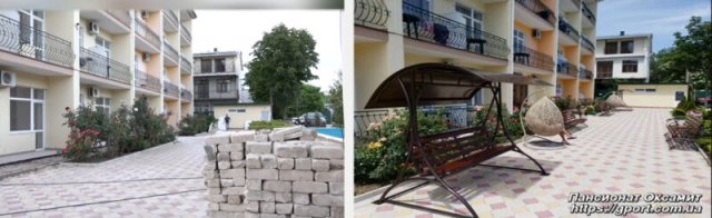В принципі на зміні кольору краденого пансіонату його “будівництво” і закінчилось. Цікаво, що на початку 2024 року росіяни обіцяли, що фарбувати фасад пансіонату “Оксамит” вони мають завершити до вересня того ж року. Згодом їм довелось визнати, що підрядники “зірвали строки здачі об’єкта” й “Дім молоді” офіційно спромоглись відкрити лише зараз.