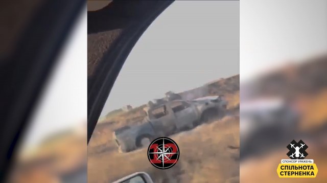 "На вже знайомому вам місці на Херсонщині 12 друзів Оушена знищили російський пікап під час рухуОкупантам доведеться або прибрати блокпост, або будуть там постійно дохнути", - написав Стерненко.