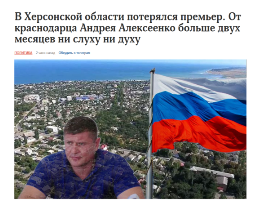Аналогічна ситуації сталася на початку 2025 року з так званим прем’єр-міністром Херсонщини, росіянином Андрєєм Алєксєєнком.Його “загубили” ще в лютому цього року, і з того часу про долю “прем’єра” жодної інформації немає. Однією з версій є те, що за Алєксєєнка взялись російські слідчі. Річ у тім, що до вояжу на Херсонщину він керував містом Краснодар. Наприкінці 2021 року краснодарські силовики запідозрили чоловіка в отриманні хабаря на суму 1,5 мільйона рублів.